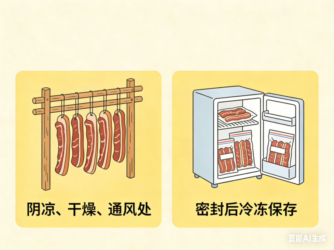 烹饪方式推荐蒸、煮、炖,可以使部分脂肪溶出并析出部分盐,让口感更清爽。此外,腊制品应存放在阴凉、干燥、通风处,或密封后冷冻保存,避免霉变。若表面出现明显黏液、异味或霉斑,切勿食用。